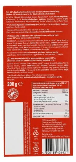 Waffelgebäck mit 37% Nougatcreme-Füllung und 47% Vollmilch-Schokolade.