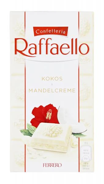 Feine weiße Schokolade mit Mandelstückchen, Kokosflocken und einer Kokos- Mandelcremefüllung.